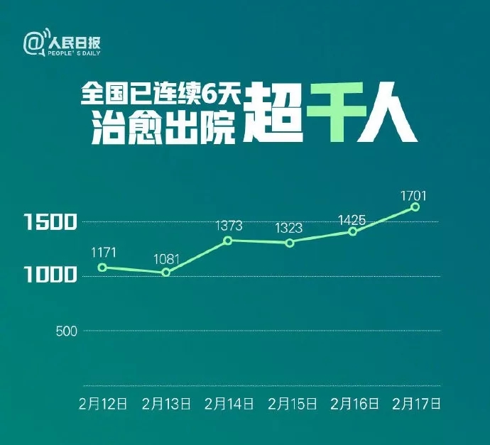 拐點(diǎn)不好判斷,但情況是在好轉(zhuǎn)。全國連續(xù)6天治愈出院人數(shù)突破千人大關(guān)。