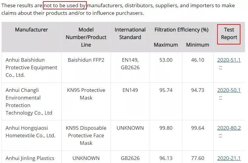 熱點(diǎn)一:CDC列出最新100+中國(guó)口罩企業(yè)檢測(cè)結(jié)果