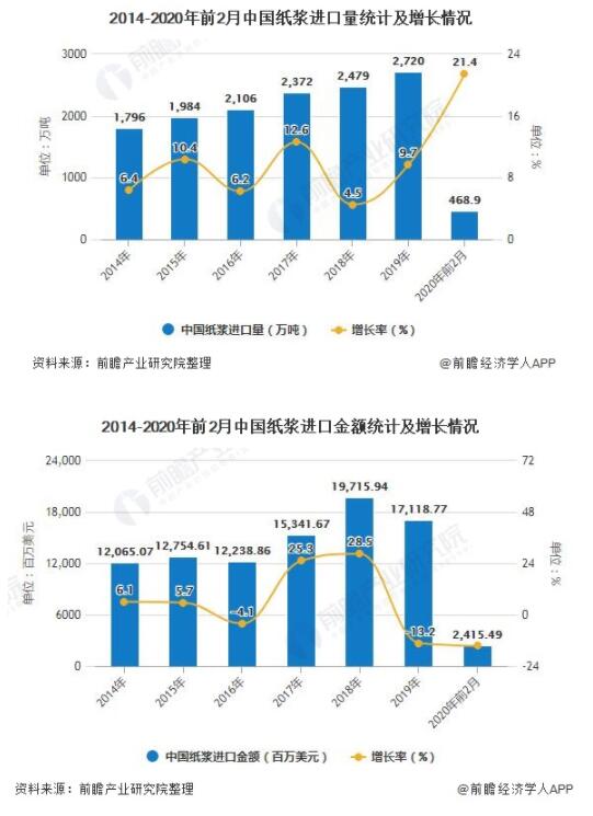 2020年1-2月中國(guó)紙漿進(jìn)口量將近470萬(wàn)噸