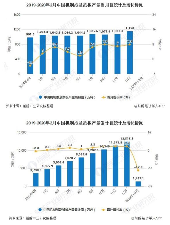 2020年1-2月中國(guó)機(jī)制紙及紙板產(chǎn)量超1400萬(wàn)噸