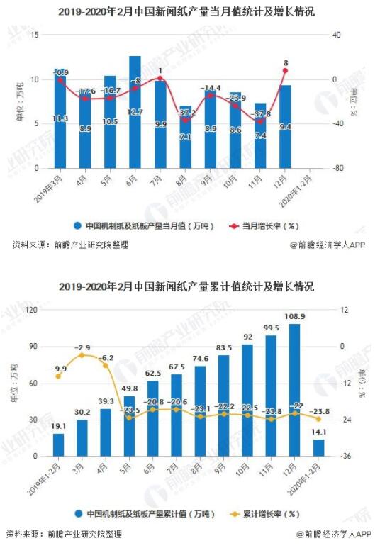 2020年1-2月中國(guó)新聞紙產(chǎn)量超14萬(wàn)噸