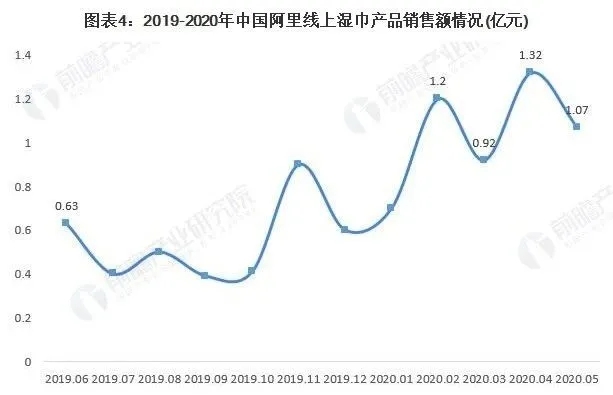 2020年疫情呈現(xiàn)爆發(fā)極大地刺激了濕巾的消費(fèi)需求,2020年1-5月,阿里濕巾線上銷售額均在1億元左右,2020年4月銷售額更是高達(dá)1.32億元,2020年2月環(huán)比增速達(dá)到113.63%。