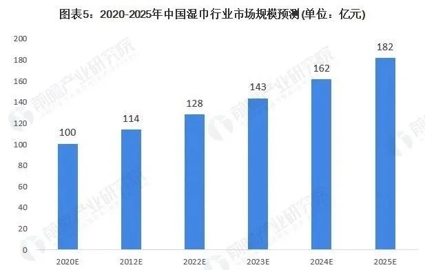 由此可見我國濕巾市場仍有巨大空間,我國經(jīng)濟(jì)積極向好,居民消費(fèi)能力及意愿不斷提升,企業(yè)不斷探索制造多元化的濕巾,且經(jīng)過疫情我國濕巾行業(yè)發(fā)展前景更為明朗,預(yù)計(jì)2025年市場規(guī)模有望達(dá)到182億元。