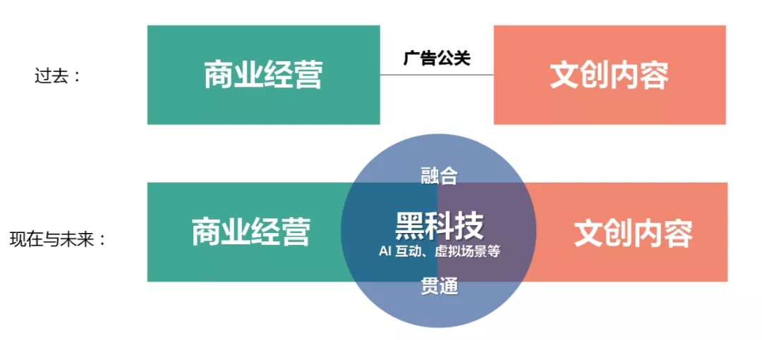現(xiàn)在與未來:商業(yè)運(yùn)營和文創(chuàng)內(nèi)容之間形成彼此需要、高度融合的關(guān)系,中間的催化劑是不斷變革發(fā)展的黑科技。