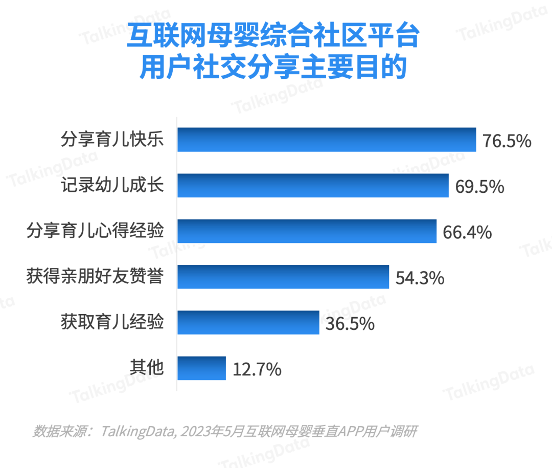 對于分享目的,超過7成用戶愿意分享育兒過程中的快樂和幸福,傳遞正能量;同時,69.5%用戶是為了記錄孩子成長的過程,66.4%的用戶是為了分享育兒心得經(jīng)驗。