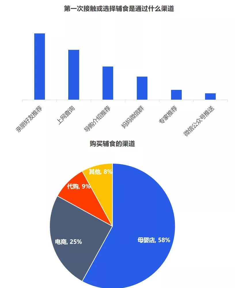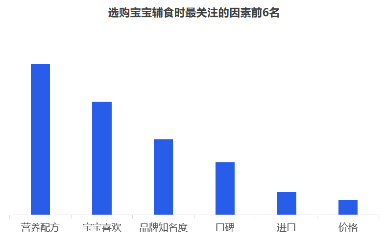 但是對于品牌而言,最重要的是洞察需求,一個(gè)好的洞察,一定是清晰揭示消費(fèi)者的傾向,暗示了一個(gè)市場機(jī)會。究竟品牌入局輔食的機(jī)會有多大,媽媽們是如何看待輔食的? 從當(dāng)前的嬰幼兒用品的采購情況來看,媽媽負(fù)責(zé)嬰幼兒用品的采購,用戶占比超七成。奶爸也會經(jīng)常協(xié)助寶媽,參與到嬰幼兒用品的采購活動中,用戶占比為41.7%。 從近一年的百度指數(shù)來看,目前關(guān)注輔食最突出的地域是廣州、浙江、江蘇、山東、北京等,可見,當(dāng)前一二線城市的消費(fèi)者對輔食的認(rèn)知教育有所提高,但是低線城市的消費(fèi)者對寶寶輔食的添加還不重視。 其次,從年齡段來看,“30-39歲”的消費(fèi)人群對輔食的關(guān)注度最高,而在這其中,女性對輔食的關(guān)注度遠(yuǎn)高于男性。 2019年母嬰行業(yè)觀察通過線上調(diào)研近10000人數(shù)的家長進(jìn)行了輔食調(diào)查,其中80后占據(jù)24%,85后占據(jù)26%,90后44%,95后4%,對輔食的態(tài)度如下: 1、幾乎所有的媽媽都認(rèn)為有必要給寶寶添加輔食,并且有一半的媽媽認(rèn)為要在6個(gè)月時(shí)添加,而有32%的媽媽認(rèn)為在6個(gè)月-1歲開始添加,還有16%的人在6個(gè)月以前就添加輔食。 2、大部分寶寶的輔食來源都是“購買與自制”相結(jié)合,而在購買輔食時(shí),媽媽們購買最多的類型依舊是米粉,其次則是餅干、磨牙棒等小食品、營養(yǎng)面等。 3、互聯(lián)網(wǎng)與社交圈對媽媽的購買決策權(quán)的影響力較大,據(jù)調(diào)查顯示,媽媽們第一次接觸或選擇輔食大多都是通過親朋好友推薦,上網(wǎng)查詢等。當(dāng)然消費(fèi)者在購買嬰兒輔食的渠道選擇上,其實(shí)與奶粉并無不同,為了保證產(chǎn)品的質(zhì)量和安全性,同時(shí)也為了可以得到育嬰專家的指導(dǎo)和幫助,消費(fèi)者更傾向于在專業(yè)的母嬰用品連鎖店或主流電商平臺購買食品。 4、隨著85后、90后新生代父母的崛起,他們與父輩的消費(fèi)觀念并不相同,不再執(zhí)著與于進(jìn)口與價(jià)格等,而是開始關(guān)注是營養(yǎng)配方,重要的是寶寶喜歡。 5、對于寶寶而言,自添加輔食開始,都是與奶粉喂養(yǎng)相結(jié)合,目前超一半的寶寶每天食用輔食的頻率都是一天兩頓。當(dāng)然這在一定程度上也決定了每個(gè)月在寶寶的輔食上的花費(fèi)是多少,從月消費(fèi)來看,可以明顯看出200以內(nèi)的將近半數(shù),當(dāng)然也可以看出花費(fèi)在300以上的有21%,可見,對于嬰兒食品這個(gè)特殊的品類,以及嬰幼兒這個(gè)特殊的消費(fèi)人群,消費(fèi)持續(xù)升級仍然明顯。近兩年來,嬰幼兒輔食高端化、有機(jī)化趨勢明顯。 近幾年來,越來越多的媽媽意識到輔食的重要性,隨著我國居民可支配的收入不斷提高,消費(fèi)者投入了更多的關(guān)注給自己的孩子,作為寶寶的第二餐,消費(fèi)者愿意投入更多費(fèi)用,使用周期會不斷變長,且更注重輔食產(chǎn)品的品質(zhì)和質(zhì)量??梢婋S著消費(fèi)水平的提升,年輕父母對于對孩子的飲食質(zhì)量、飲食營養(yǎng)的投入更加重視,會更追求高附加值、高品質(zhì)的輔食,中國輔食市場會繼續(xù)高速發(fā)展。