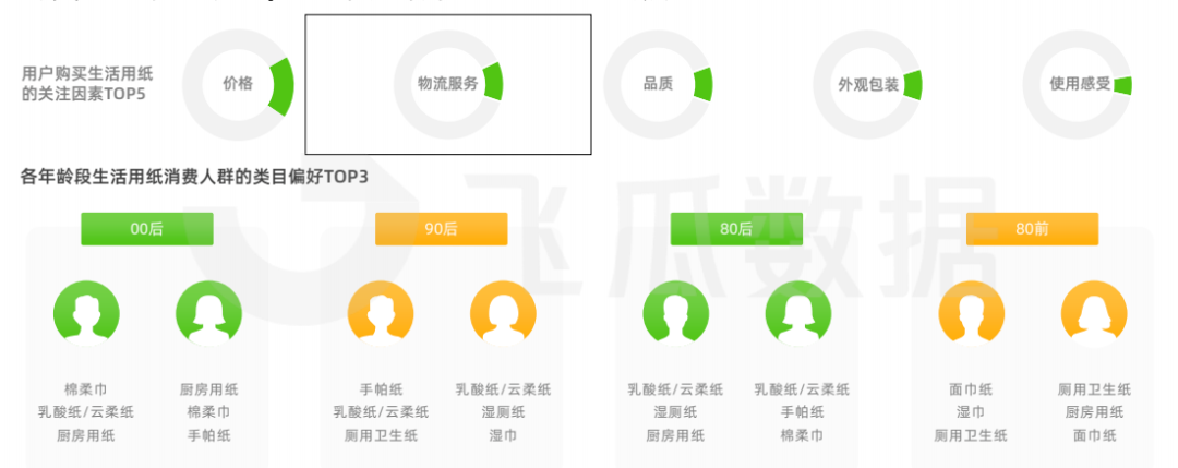 尤其手帕紙、棉柔巾、廚房用紙、乳霜紙等產(chǎn)品,能很好滿足他們在工作、戶外運動、顏值管理等不同場景下的用紙需求,或成為生活用紙品牌商家后續(xù)營銷的突破口。