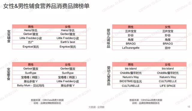 上圖所示,無論是男性還是女性在輔食營養(yǎng)品消費(fèi)品選購中都集中在以下幾個(gè)特定的品牌: